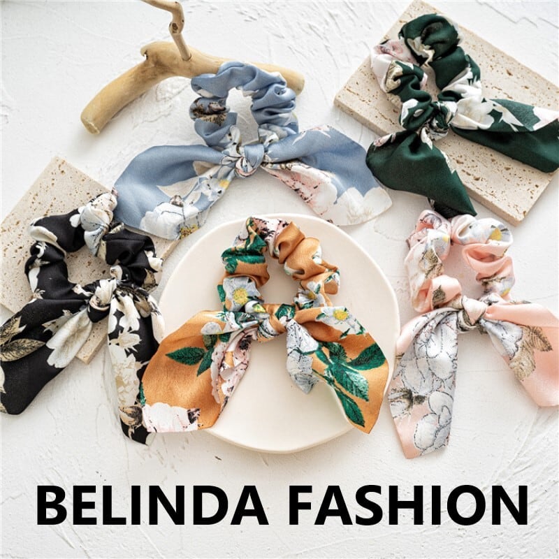シュシュ/リボン/花柄/サテン/ブラック/黒