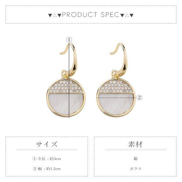 ラインストーン&大理石風ラウンドハーフデザインピアス