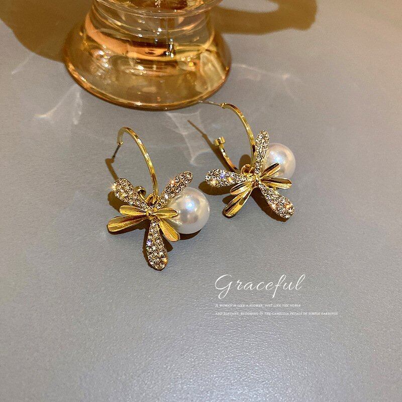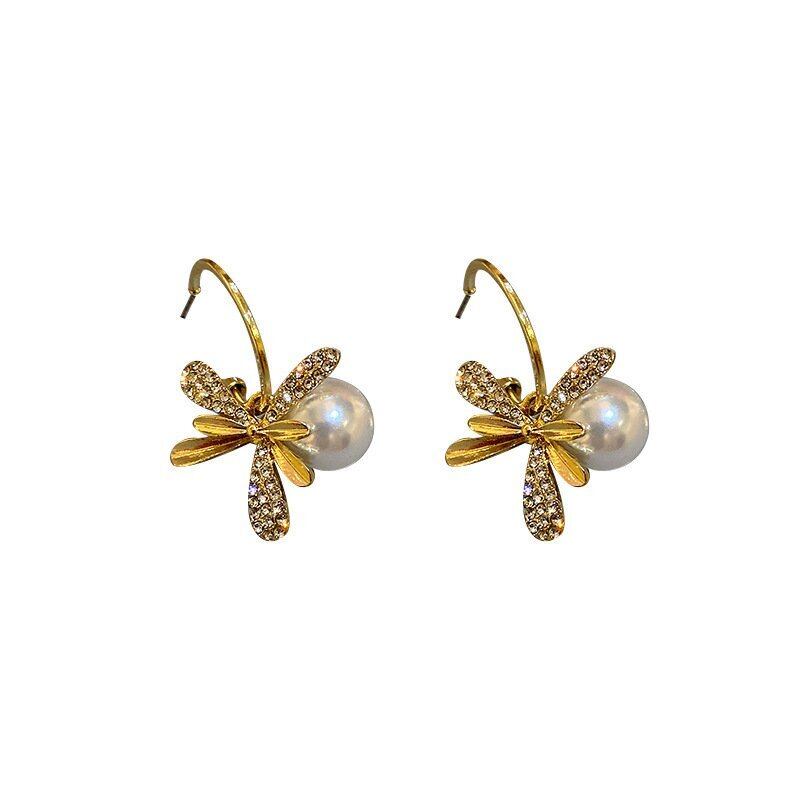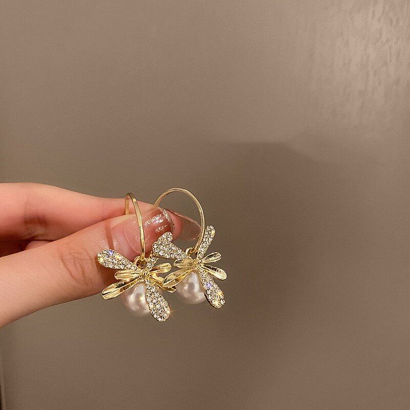 ラインストーンフラワーフープピアス