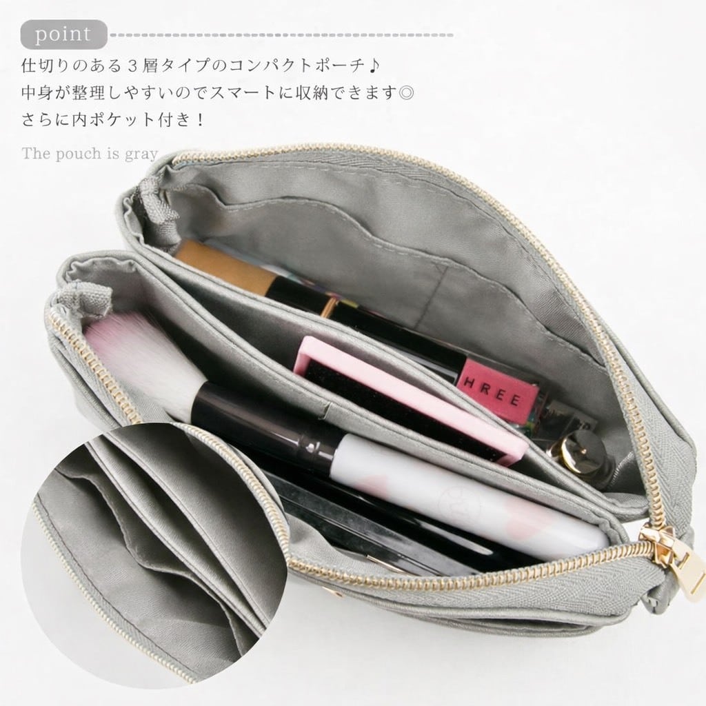 化粧ポーチ/小物入れ/三層構造/ポケット付き