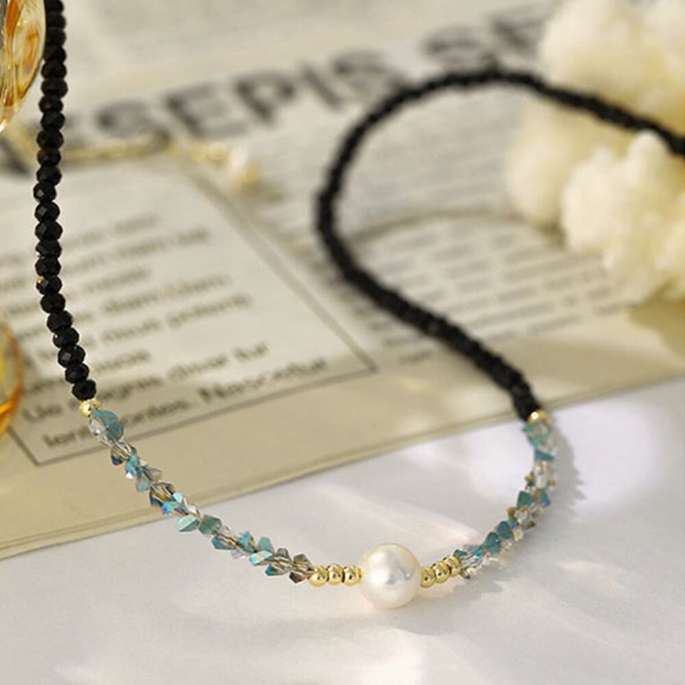 ネックレス/ストーン/ブラック/黒/オーロラ/クリア