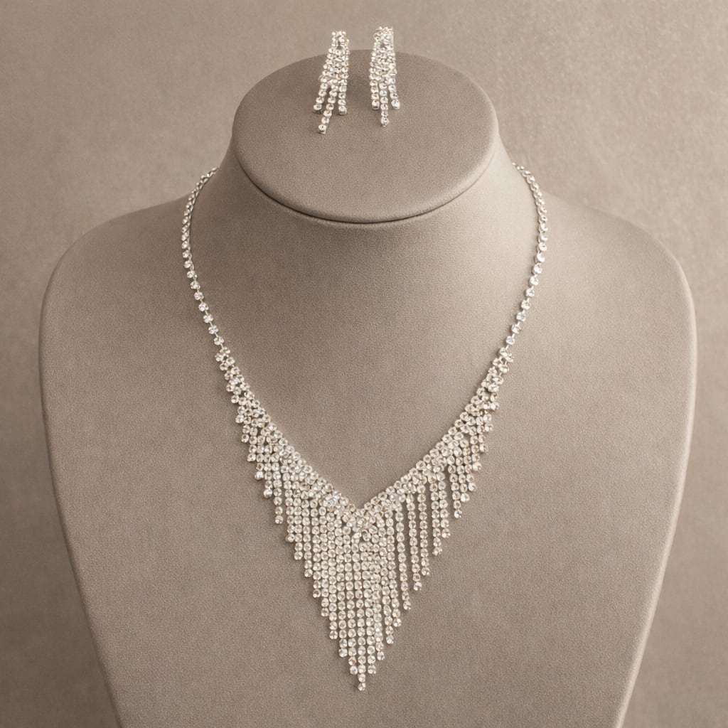 ラインストーンネックレスピアスセット
