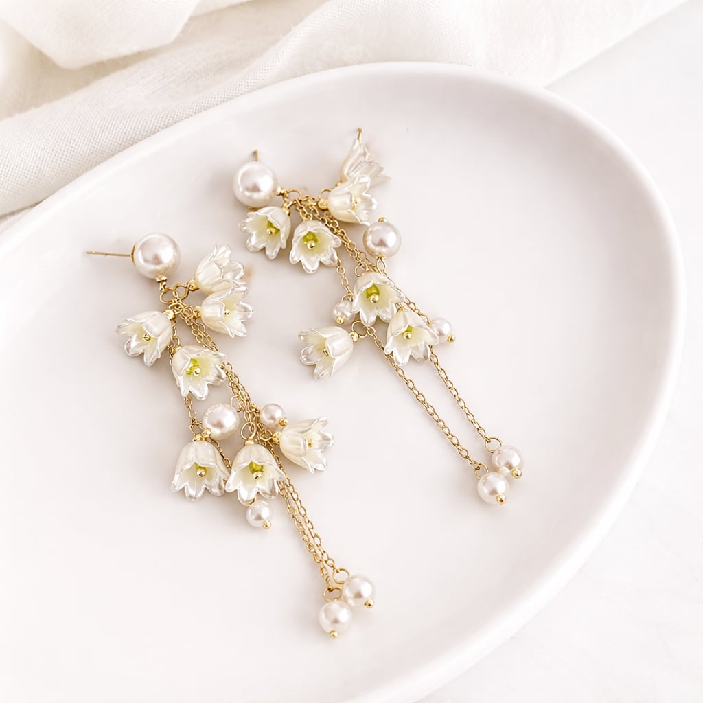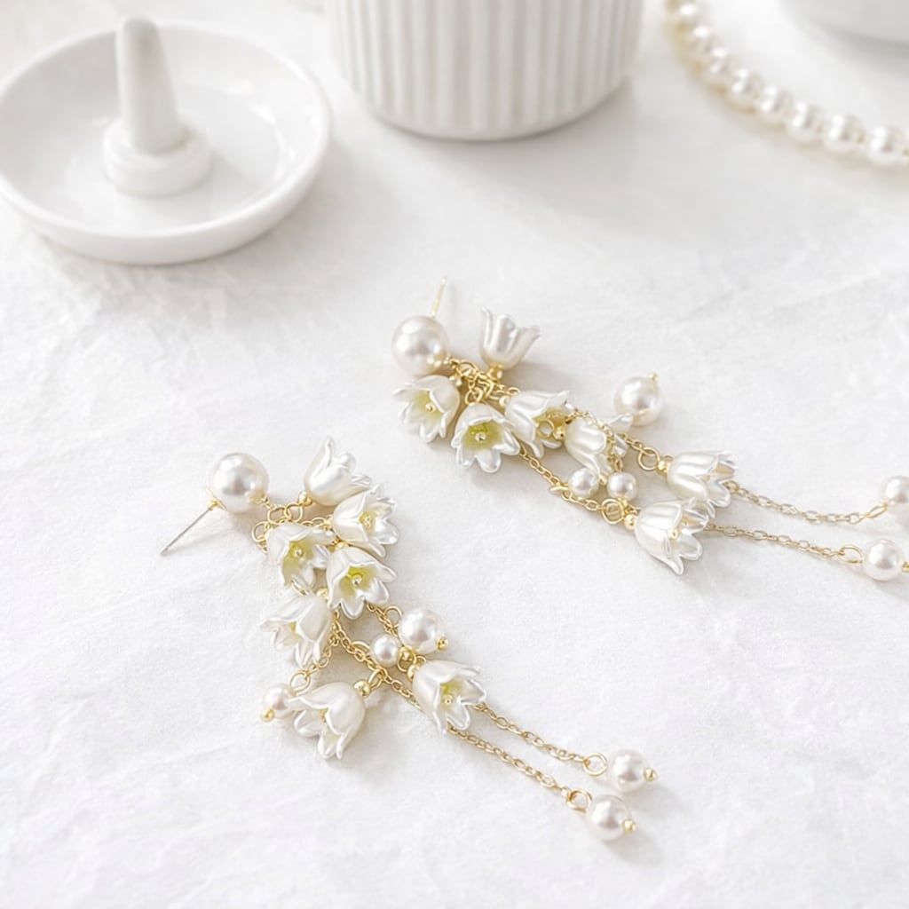 ホワイトフラワーロングピアス