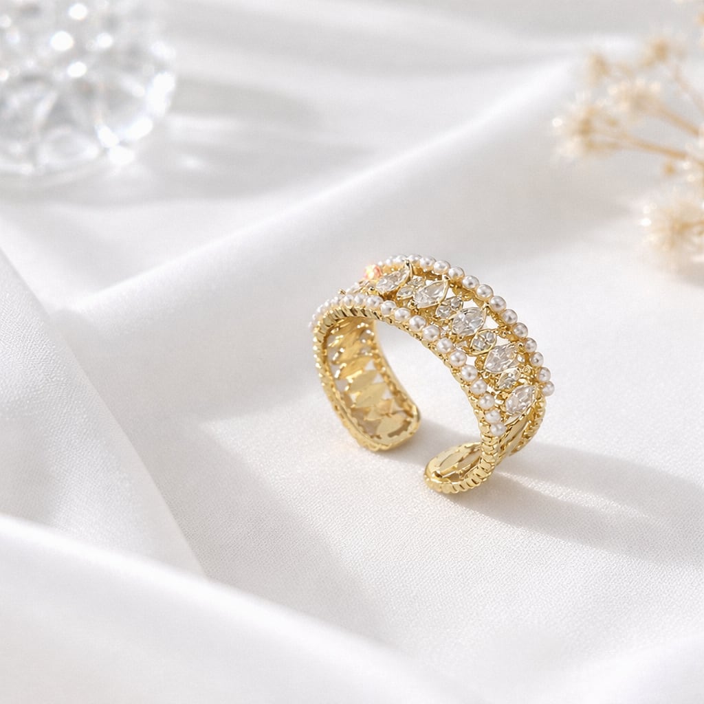 パールラインストーンリング