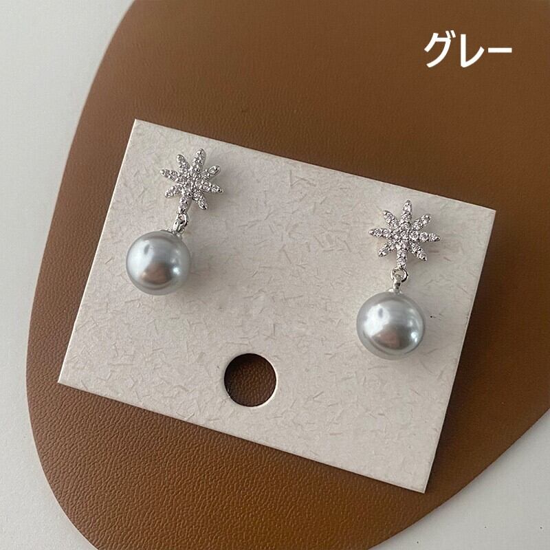 ピアス/ポストピアス/揺れる/パール/グレー