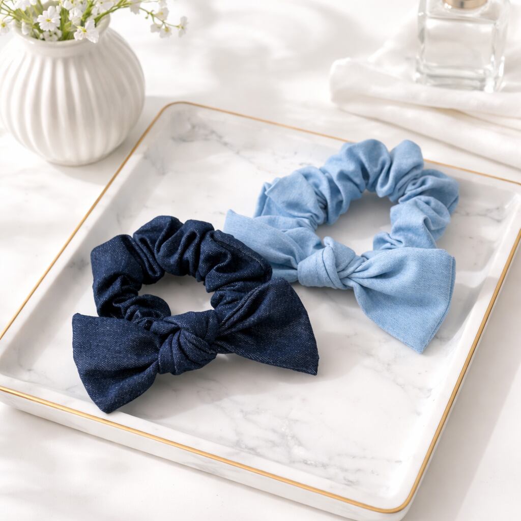 シュシュ/ヘアゴム/デニム/ライトブルー/インディゴ